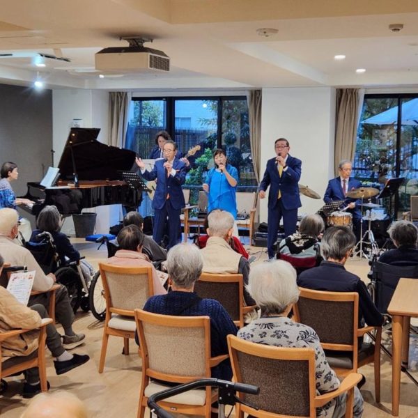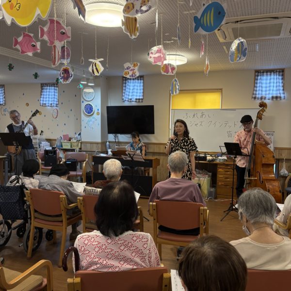 そういう施設の方たちはなかなか1人でコンサートやライブに行けませんので、私たちの生演奏を聞いて非日常的な体験をとても楽しんでくださいます。特に80代〜90代の方々は、日本で戦前・戦後流れていたアメリカのジャズ音楽や、それに影響された日本の楽曲を青春時代にたくさん聞いてこられています。私たちの音楽でそんな昔を懐かしく思い出して頂いてます。