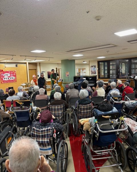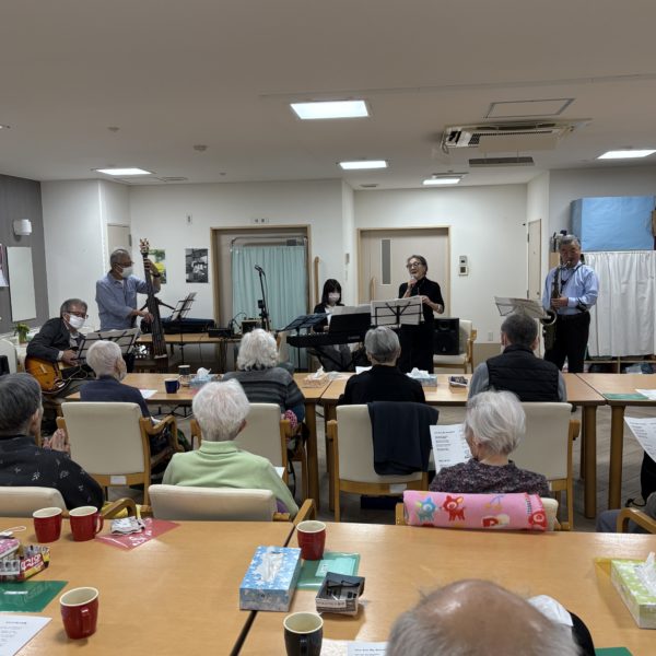 そういう施設の方たちはなかなか1人でコンサートやライブに行けませんので、私たちの生演奏を聞いて非日常的な体験をとても楽しんでくださいます。特に80代〜90代の方々は、日本で戦前・戦後流れていたアメリカのジャズ音楽や、それに影響された日本の楽曲を青春時代にたくさん聞いてこられています。私たちの音楽でそんな昔を懐かしく思い出して頂いてます。